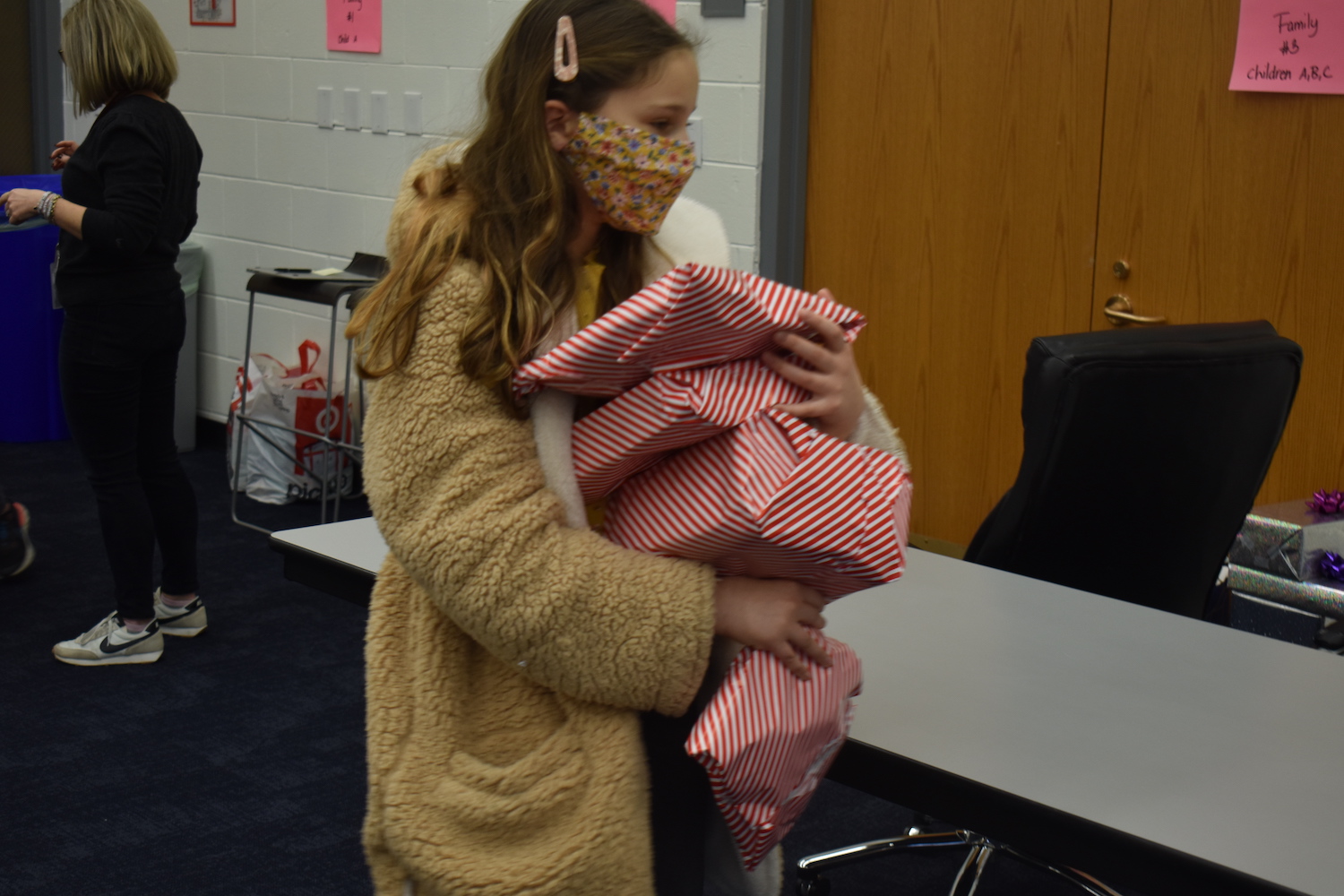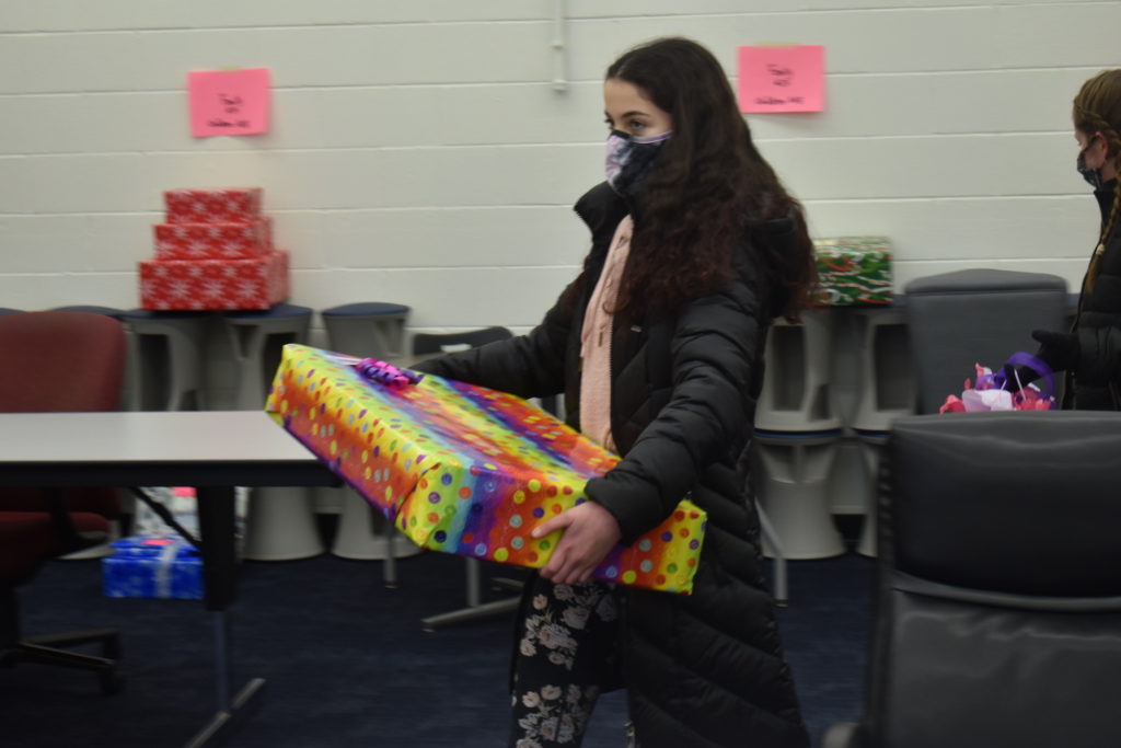 Margot Swibel, an Avoca seventh-grader, drops off a gift for one of the 22 families sponsored in the giving tree program.