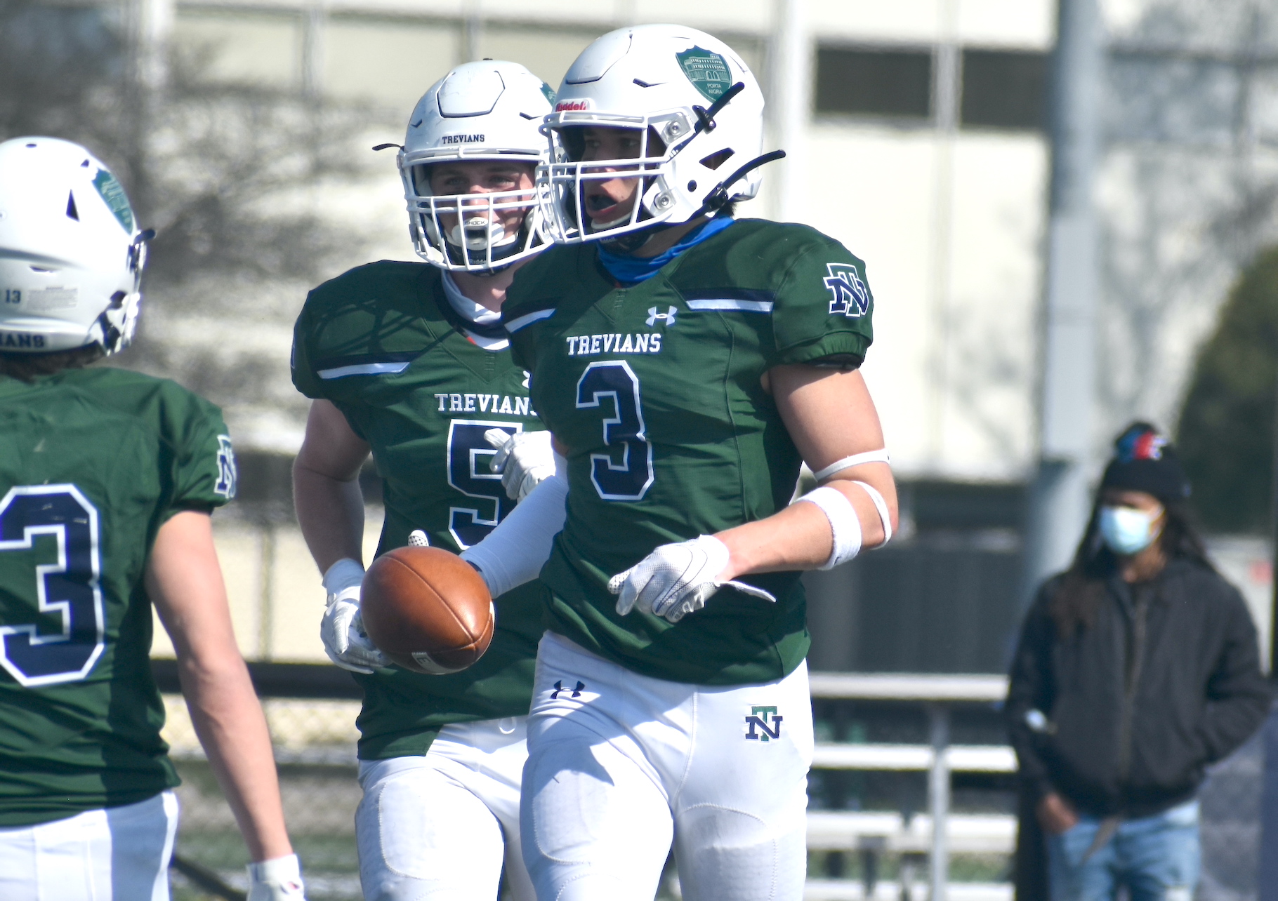 Max Dancey is a senior outside linebacker for the Trevians who made a key interception in the team’s rivalry win over Evanston April 3.