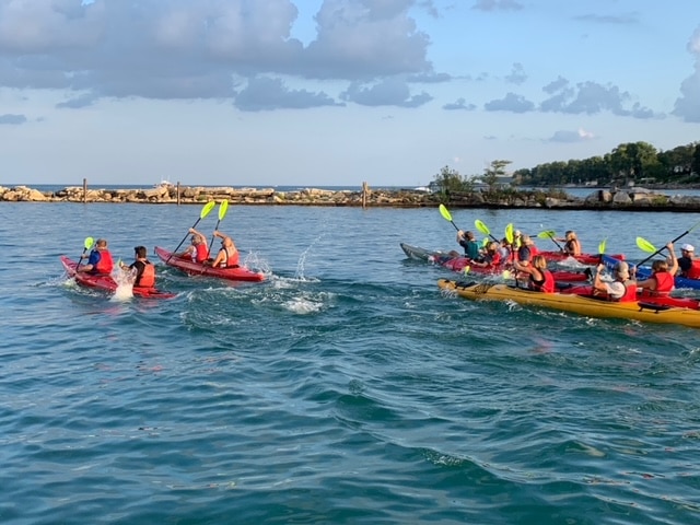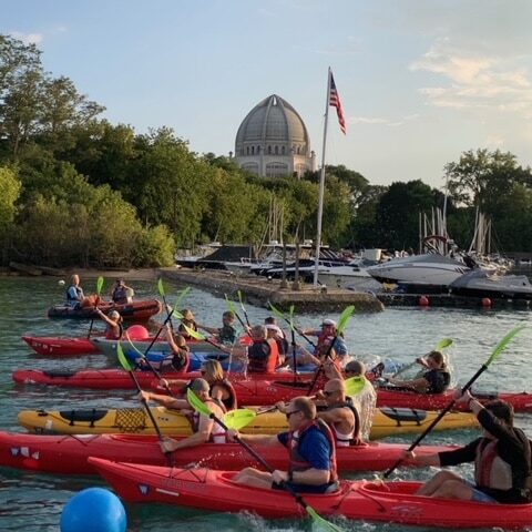 The event received kayaks from Northwest Passage, instruction from Sheridan Shore Sailing School, space from the Wilmette Harbor Club, food from Al’s Meat Market and Torino Ramen, and entertainment from Chris Karabas, of Wilmette, among other gifts and partnerships.
