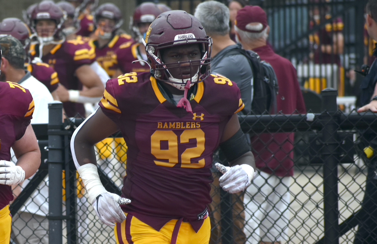 Mike Williams, of Evanston, is a senior defensive lineman and three-year varsity player for the Ramblers. He also wrestles for Loyola Academy.
