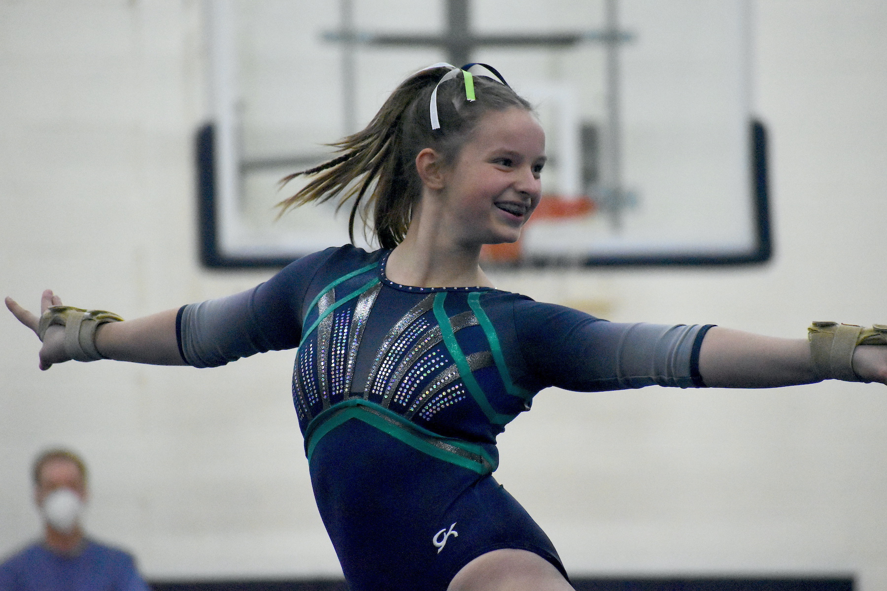 Competing for a school, she’s found that individual scores are not the focus, unlike in club gymnastics. Instead, playing a role in the team’s success is the priority.