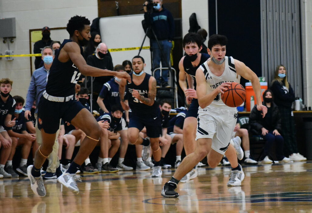 Evanston matched New Trier for much of the first half, but a Kirkpatrick three-pointer near halftime helped the Trevs to a 27-23 lead at the break.