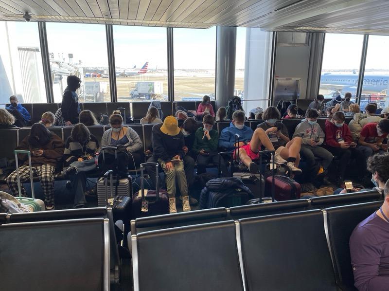 Eventually, a plan emerged involving a new flight; however, the airline needed to mobilize a crew. About seven hours later, the students and chaperones were still posted up in the terminal.