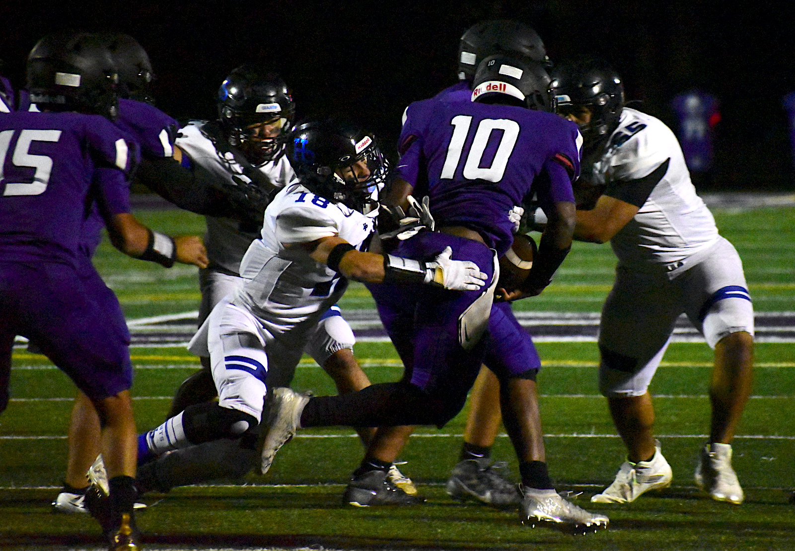 The Giants were coming off two consecutive losses (Buffalo Grove, Hersey) in which they gave up at least 45 points. Seeking redemption, Highland Park’s defense forced numerous turnovers, including interceptions from Nick Blumer and Johnny Walker, and kept the Vikings out of the end zone.