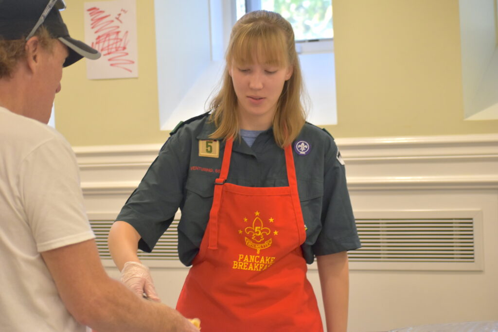 Troop 5 members, alumni and supporters gathered around piles of pancakes and mark a milestone on Saturday, Oct. 22.