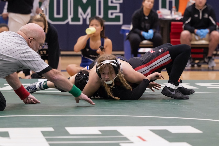 Clara Ugaz, of Highland Park, pins an opponent on her way to a second-place finish.