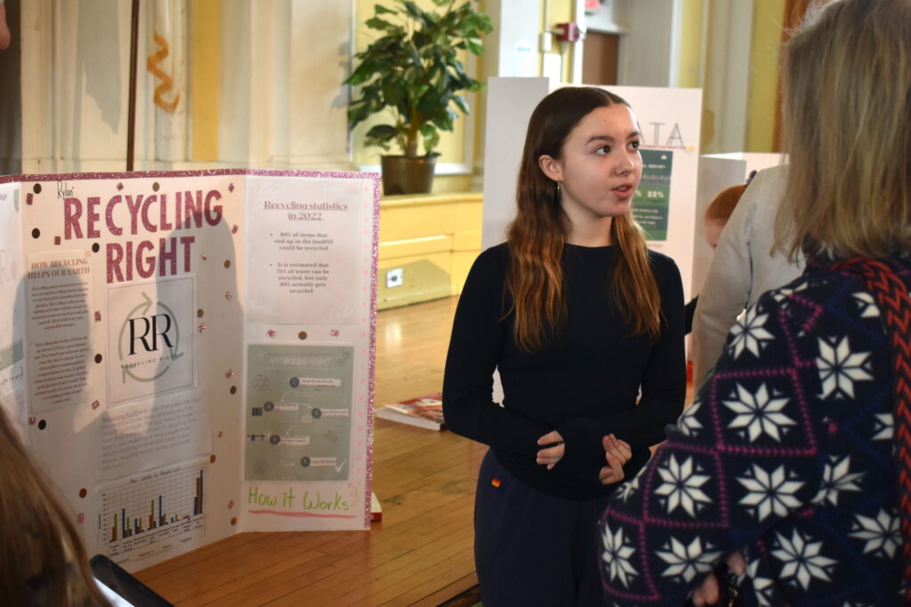 Under the guidance of teacher John DeGiulio, the students discussed their work with their fellow Skokie School students, school educators and parents who dropped in on Feb. 9.