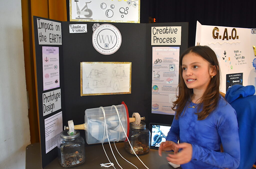 Other eco-friendly ideas included a solution to the plastic waste from daily contacts, an app that helps you identify recyclable items and Workout Wash, Lizzie Willer’s project that features a miniature wash tub that rotates and scrubs as you pedal a stationary bike.