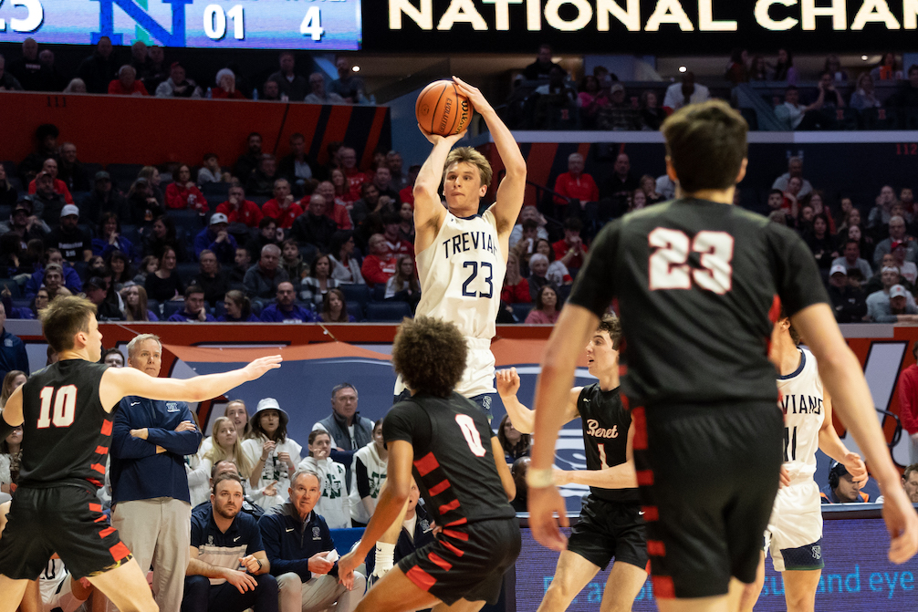 In the semifinal round, the Trevians (31-5) became the latest victims of the most dominant team in IHSA Class 4A, Benet Academy (35-1), falling 65-49 on Friday afternoon, March 10, at the University of Illinois’ State Farm Center in Champaign.