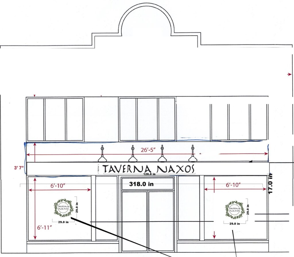 The commission granted Taverna Naxos approval for an aluminum-paneled sign — white with black lettering — to replace the current wooden one. The new restaurant will also install two window decals, according to the meeting minutes.