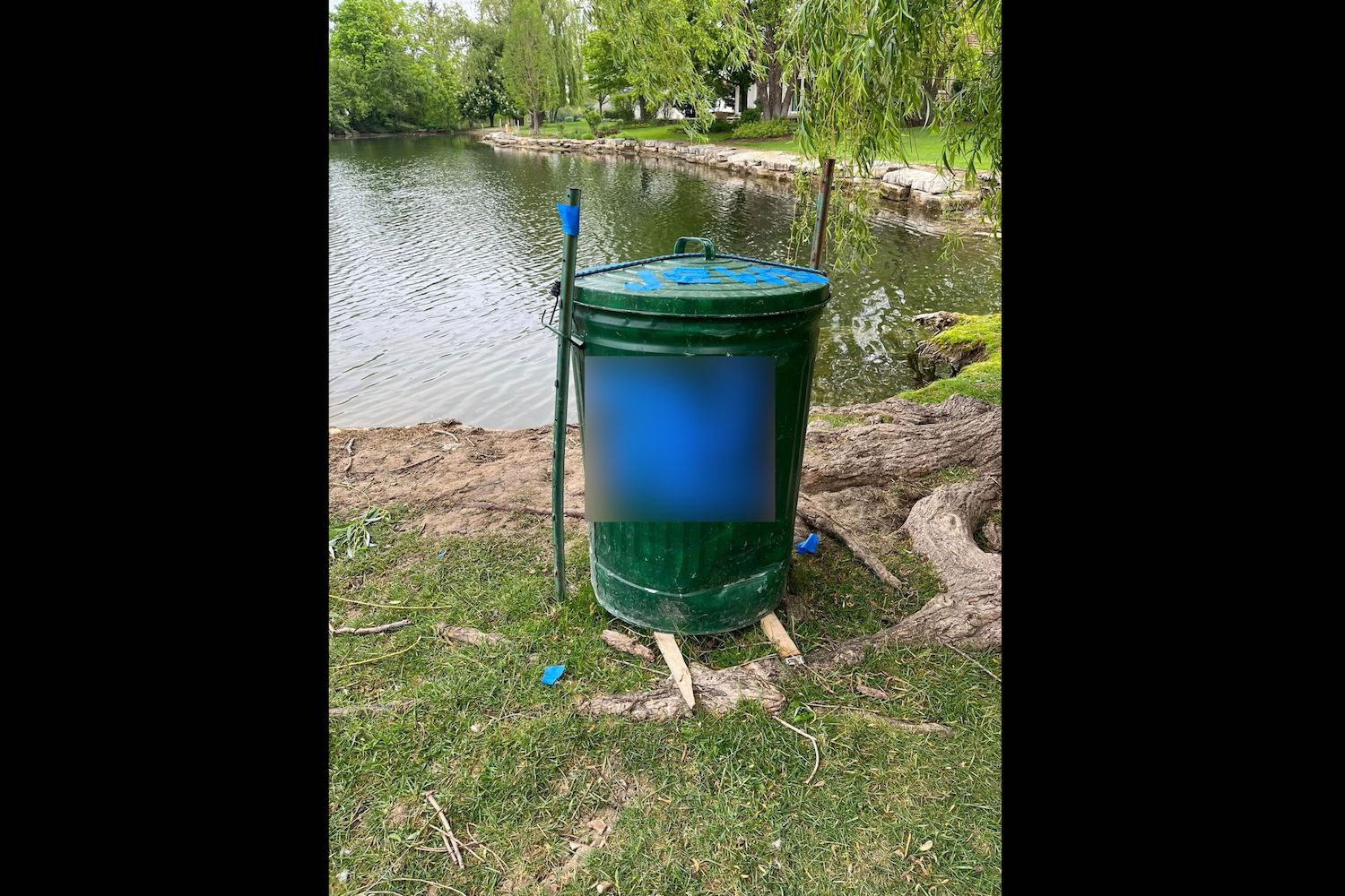 According to a Facebook post from a Highland Park resident, the can is located in the Hybernia neighborhood — which is just south of Half Day Road and west of U.S. Route 41 — and is used to feed swans in an adjacent pond.