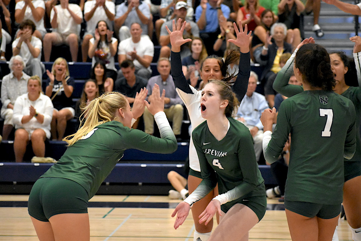 In the varsity contest, New Trier downed the visitors in straight sets, 25-17, 25-17, in front of a packed student section that boosted the home team right from the get-go.