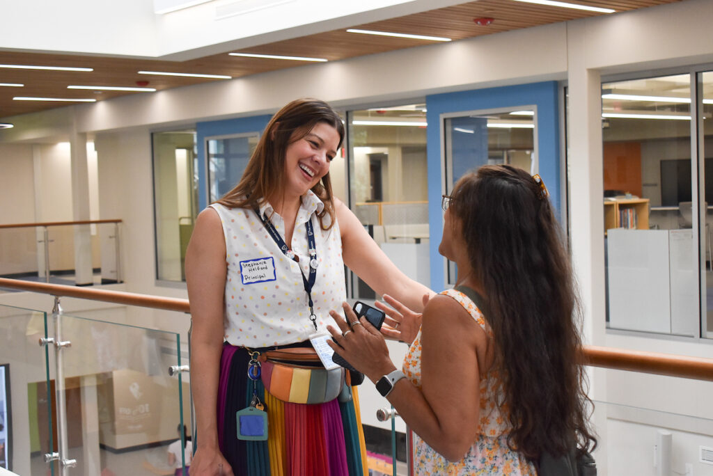 School officials began the day by unveiling a large, colorful mural painted across one of the school’s exterior walls. Artist Molly Zakrajsek, better known as MollyZ, created the piece with guidance from Sears leadership and in a description of the art she wrote, “The hope for this mural is to transform the school wall-scape into a vibrant, welcoming gathering space honoring the expression of children engaged in play, learning, and discovery.”