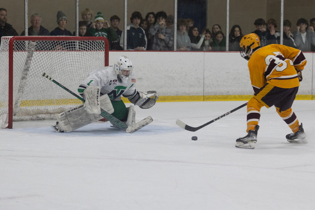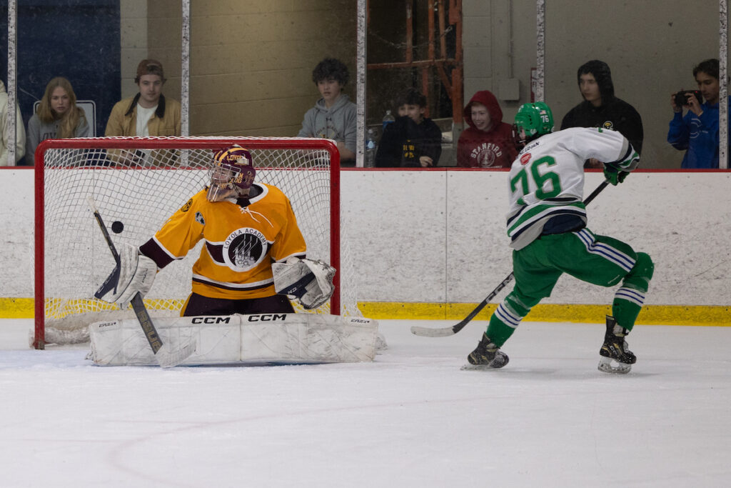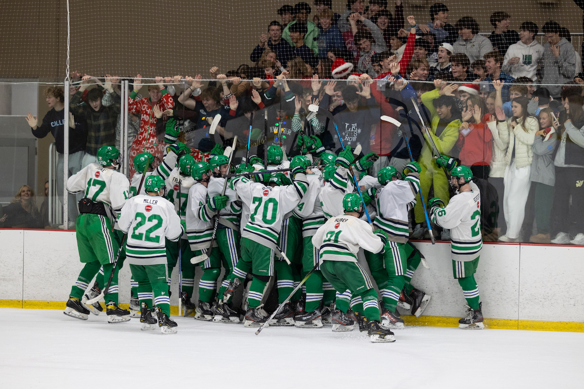 Green senior Aidan Nolan kicked off the scoring with a goal in the second period, driving the Green faithful into a frenzy.