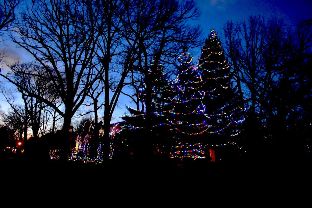 Sheridan Road is always a beautiful drive, but this time of year it terms into something more — especially at this home in Kenilworth. Don’t worry, you won’t miss it. The spectacularly lit row of evergreens is a showstopper.