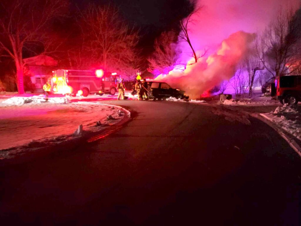 Northfield firefighters extinguish a car on fire on Wednesday, Jan. 17.