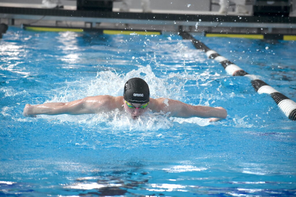 Aiden Musick sets a school record for New Trier during the 100 butterfly.