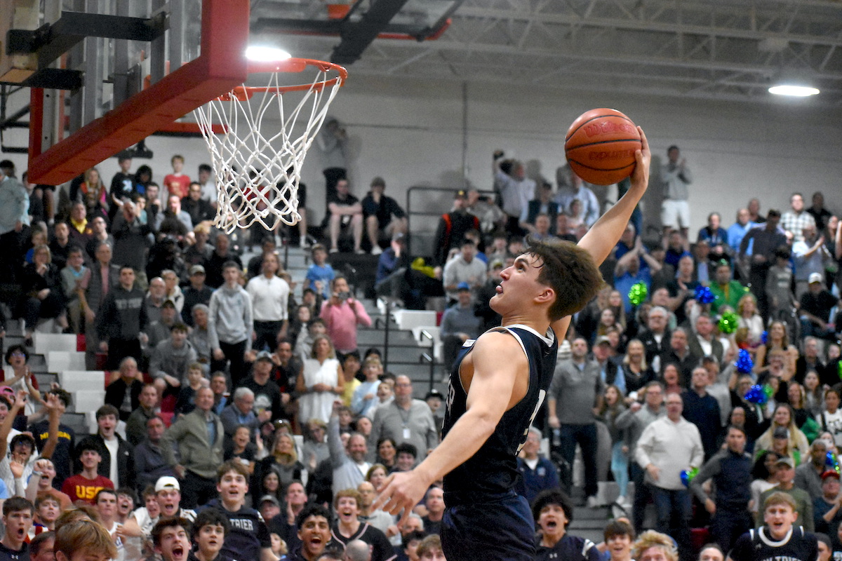“It was nuts. I have never dunked in-game, except for summer league,” the New Trier senior said. “Even though it didn’t count, to top it off like that, against a rival, it’s insane — a surreal feeling.”