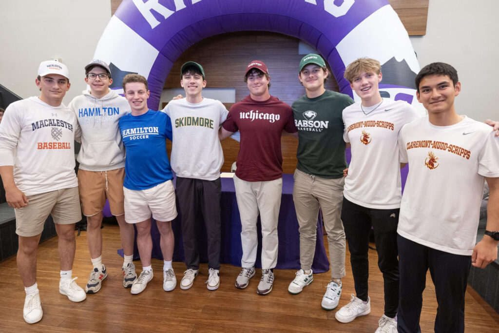 Celebrated were: Daniel Becker, of Glenview, who will play soccer for Hamilton College in Clinton, New York; Jackson Berner, of Glenview, who will play baseball for the University of Chicago; Aram Dombalagian, of Glenview, who will play baseball for Macalester College in Saint Paul, Minnesota; Smith Flickinger, of Winnetka, who will play soccer for Skidmore College in Saratoga Springs, New York; Max Greenberg Winnick, of Evanston, who will play golf for Hamilton College in Clinton, New York; Owen Keyt, of Wilmette, will run track and field and cross country for Claremont McKenna College in Claremont, California; Trafton O’Brien, of Wilmette, who will play baseball for Babson College in Wellesley, Massachusetts; and Aramis Thai-Garcia, of Northbrook, who will take a gap year before heading to Harvey Mudd College in Claremont, California, to run track and field and cross country.