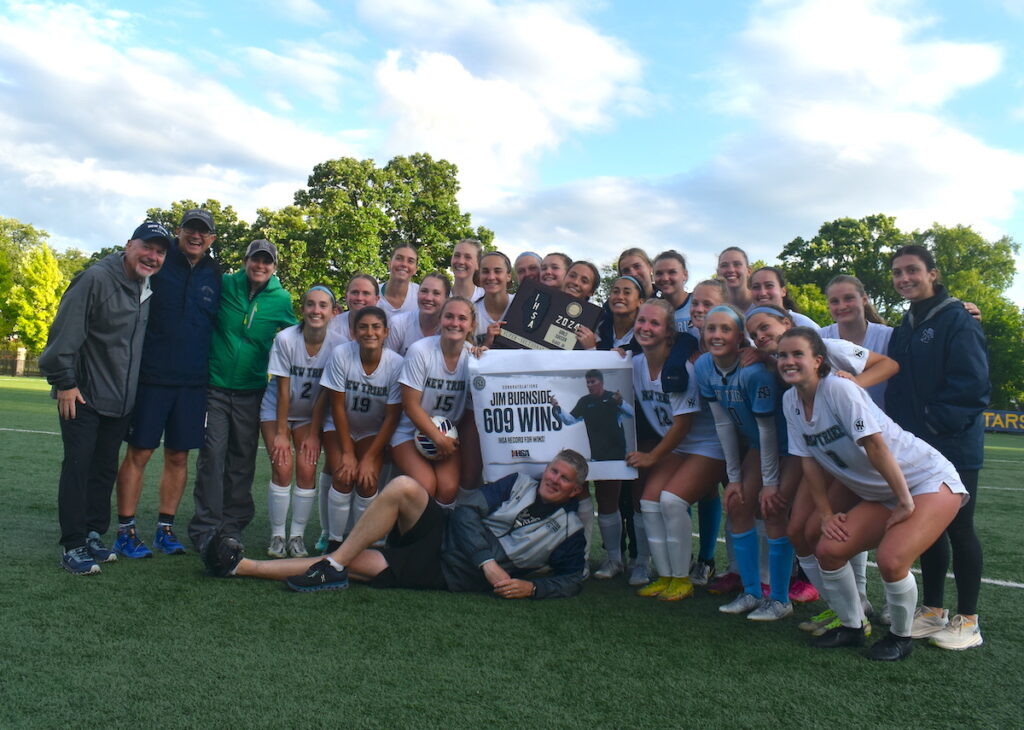 The Trevians 1-0 victory over Lyons Township was special for a trio of reasons: 1.) It sent New Trier to the state finals; 2.) It gave the team, according to the IHSA, the state record for most consecutive shutouts (17); and 3.) It made coach Jim Burnside the all-time winningest girl soccer coach in state history.