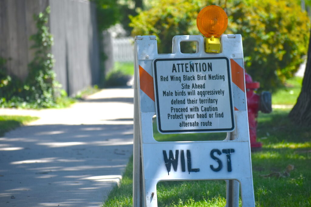 It’s the time of year for local walkers, joggers and leisurely strollers to keep an eye out for the red-winged blackbird, a hyper-protective parent that dive bombs anyone who may come too close to their nest.