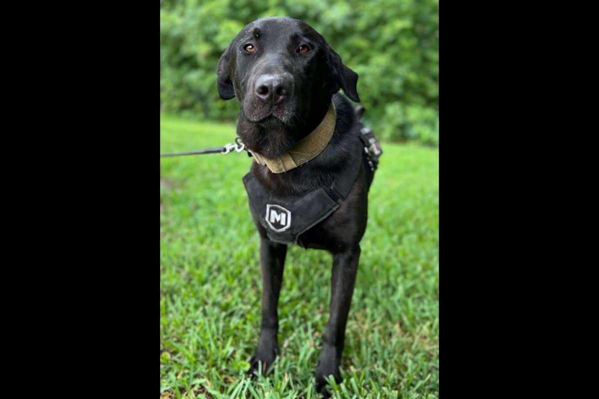 Trained to detect firearms and explosives, the dog works with a handler and signals when it detects a “suspicious odor.” The dog — a black Labrador mix — is also specifically trained to work near students, does not bark and “has a calm demeanor,” the district says. While on duty, the dog will not interact with people other than its handler. When off-duty, the dog may interact with people on a limited basis as deemed appropriate by its handler.