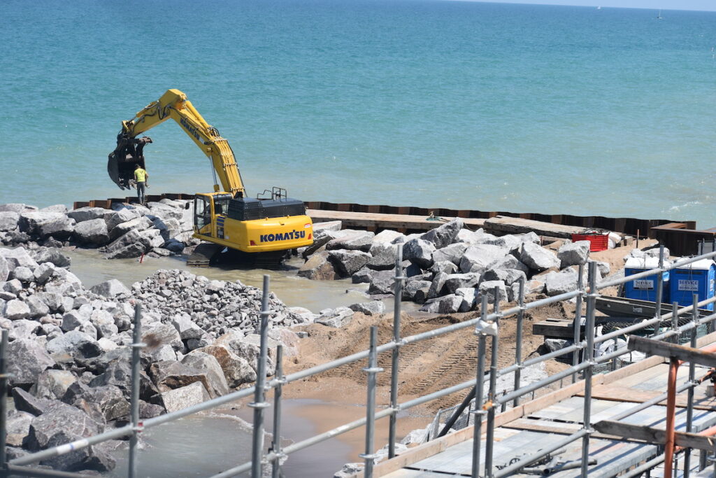 The project has also been a point of contention among residents, many of whom say the construction has done harm to the property’s natural surroundings, such as the bluffs and Lake Michigan’s water. Residents have also contended that the construction fencing and other barriers have impeded public access to the shoreline, a right under the Public Trust Doctrine.