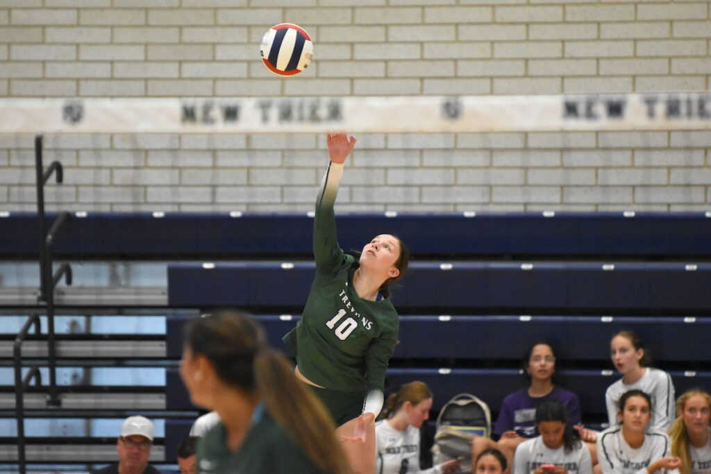 The depth was on display in Tuesday’s 25-13, 25-22 victory over Warren, when four Trevians — Kit Kat McGregor, Calia Cremascoli, Emma McHatten and Lily Long — had at least 4 kills. McGregor and Cremascoli led the way with 5 apiece. Senior libero Elizabeth Hall chipped in 3 aces, while Long had 2.