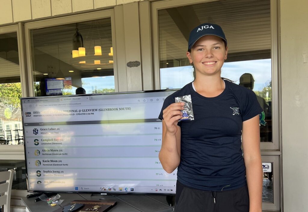 The Trevians’ Grace Leber following her regional-championship round on Oct. 1. | Photo from New Trier girls golf