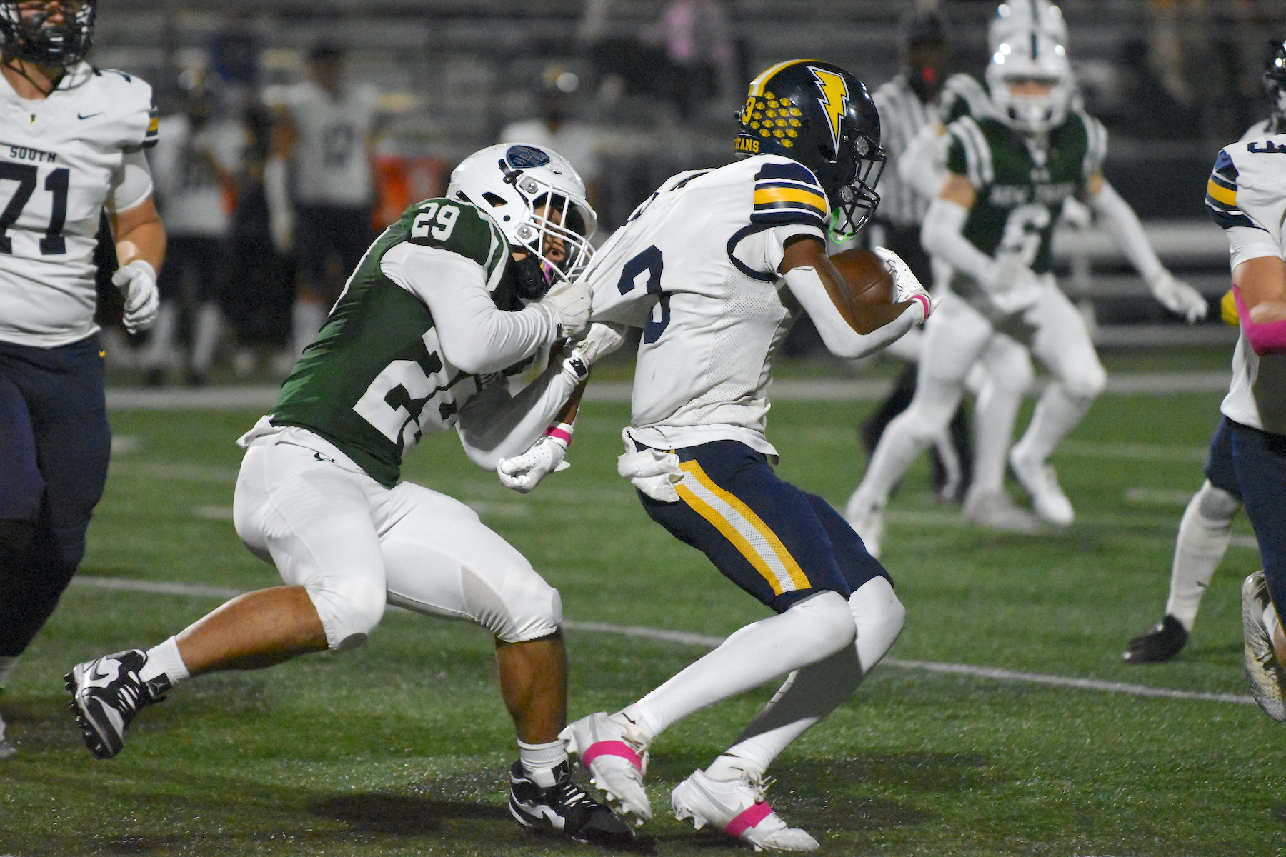 As GBS’s offense picked up, New Trier’s grinded to a halt in the first half. The Trevians punted away their only two possessions of the second quarter, while the Titans added two more scoring drives, taking a 24-3 lead into halftime.