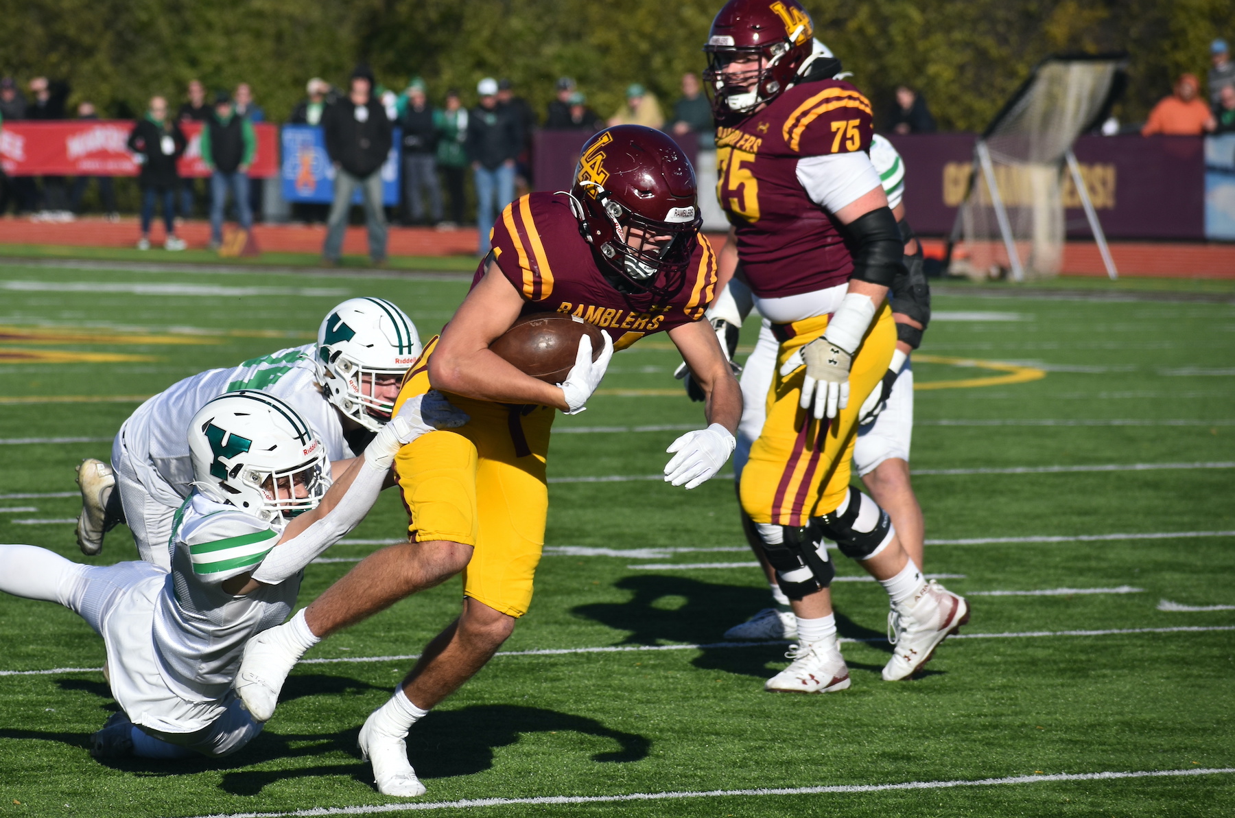 Fitzgerald spreads the ball around. Five Ramblers have more than 20 catches, including MacPherson (56 catches for 678 yards) and Gavin Vradenburg (44 for 497, 5 touchdowns). Will Carlson has eight touchdown catches and Conlon Kane six, while senior Brendan Loftus is a Division I tight end.