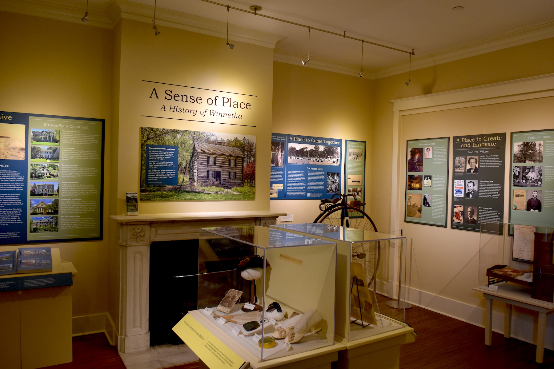 A Sense of Place was finished in 2024 and shines a light on the development of the community, breaking it down into seven sections: A Place to Settle, A Place to Grow, A Place to Live, A Place to Learn, A Place to Come Together, and A Place to Create and Innovate. The display also features information on preserving “our sense of place” and a look at the office of Frank Windes, who was the founder of the Winnetka Historical Society.