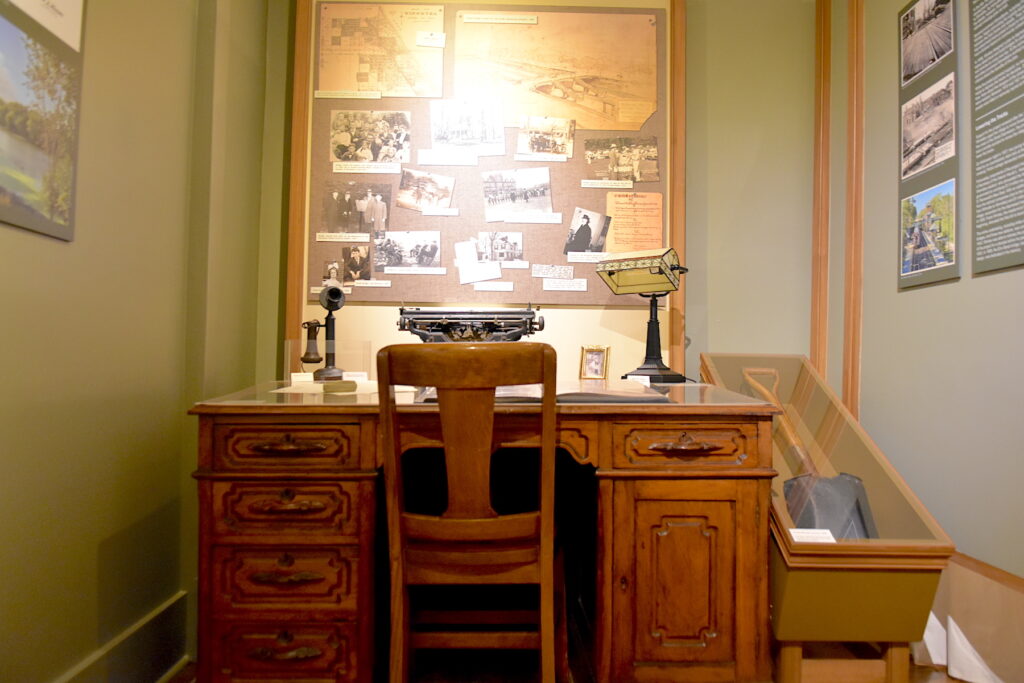 While working toward a much-needed exhibit change, curator Meagan McChesney and company could not move a large, historic desk. Instead of adjusting the exhibit around the desk, staff turned the desk — which belonged to local difference-maker Frank Windes, a pioneering village engineer — into a key attraction of the new display.