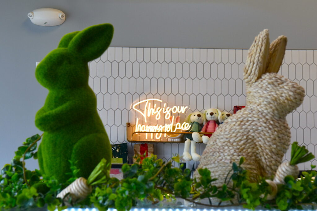 Plotkina and company have extended the “bunny” theme to the store’s decor. The shop’s light-filled and modern interior features rabbit cutouts, stuffies, playful signage and more.