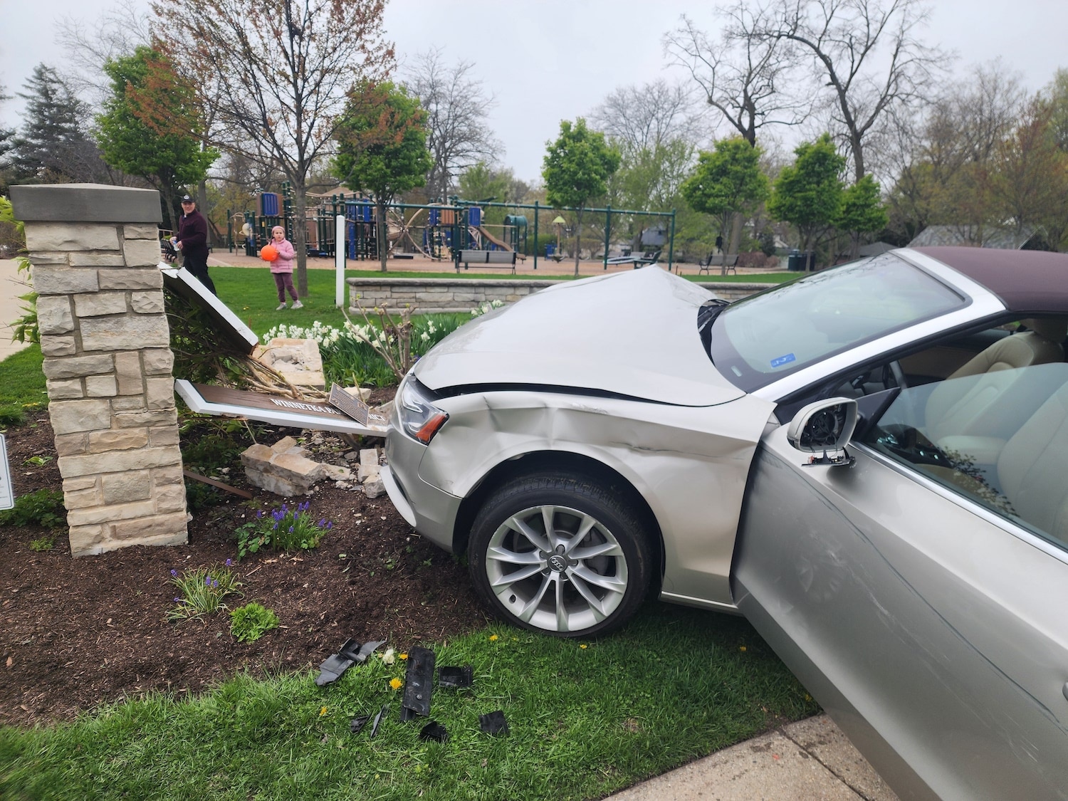According to the Village of Winnetka, the incident was an accident, as a motorist accelerated through the landscaping and into the sign.