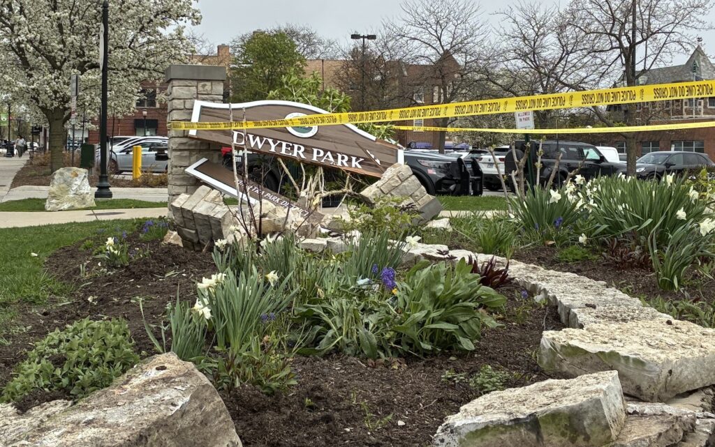A car crashed into the monument sign at Winnetka’s Dwyer Park on Saturday afternoon.