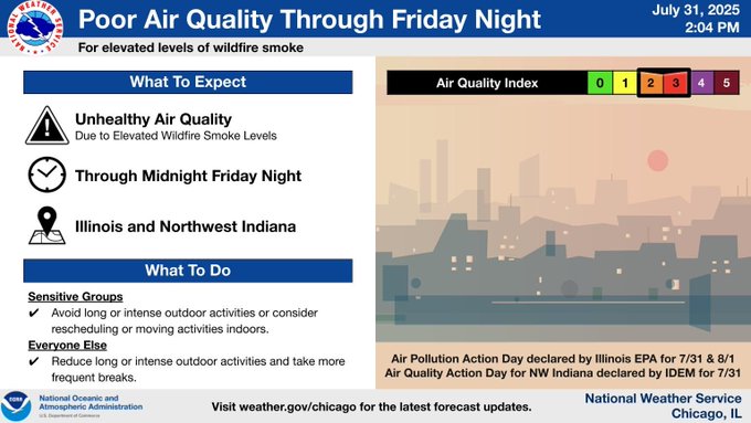 The alert comes ahead of a summer weekend full of local events, including the Wilmette Art Fair on Saturday-Sunday, Aug. 2-3; however, the weather service expects the air quality to improve in the coming days.