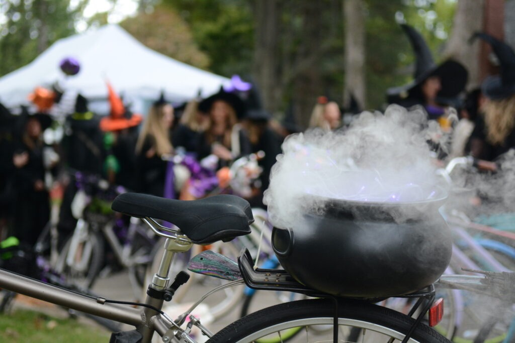 Why were dozens of witches cycling through Wilmette on Saturday?