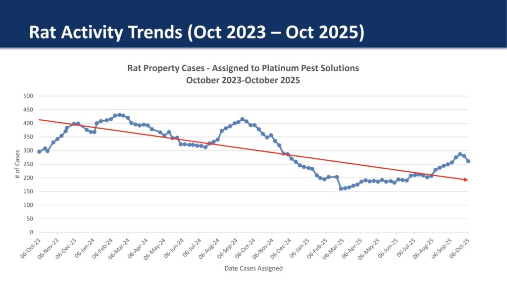 Charley said that his office previously received 10 to 20 calls a week from people concerned about the status of rat mitigation efforts on their property. But that volume has dropped ever since village staff now leave door hangar pamphlets and email residents once work is deemed complete.