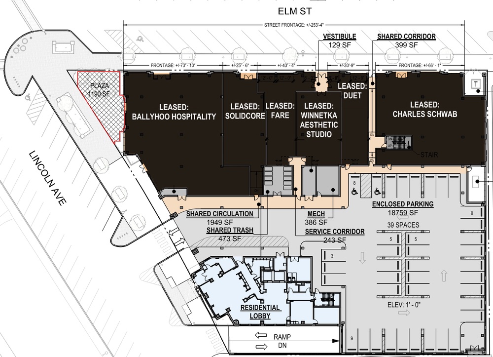 Six tenants will cover approximately 20,955 square feet of commercial space on One Winnetka’s Elm-Street facing first floor.