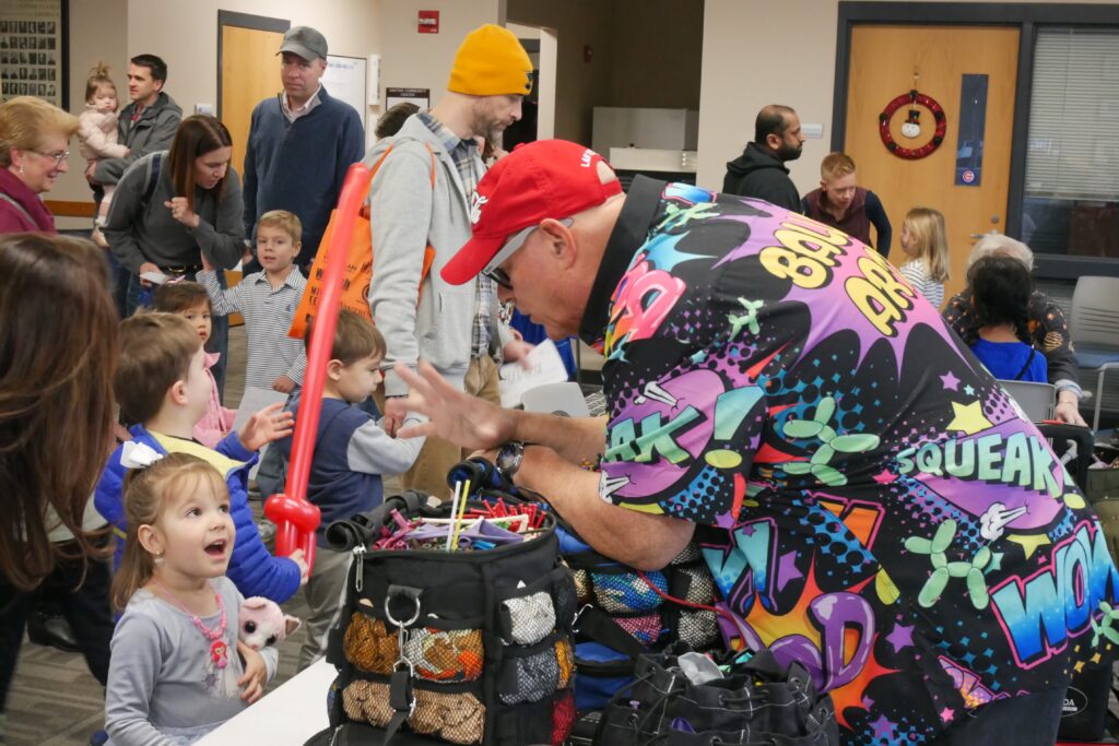 As soon as doors opened at 10 a.m., parents donned beaded necklaces and “Happy New Year” headbands while their kids, wearing glow-stick bracelets and glitter cone hats, formed a line before Robert Hirsch, a balloon artist who created swords, wands, dogs, tigers and aliens on request.