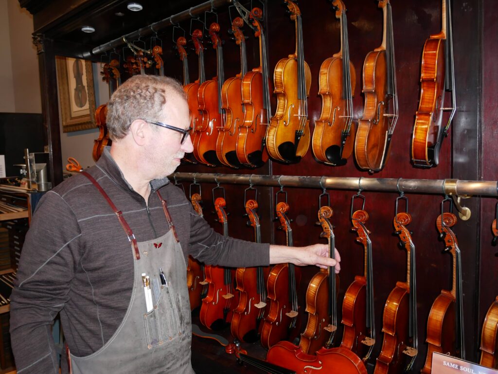 Rows and rows of handcrafted violins, cellos, violas and bows hang from the walls inside Peter Seman’s store. Toward the back, instruments rest in their cases on a stage, ready for a performance, and in an adjoining workshop are tools Seman uses to create the pieces from scratch.