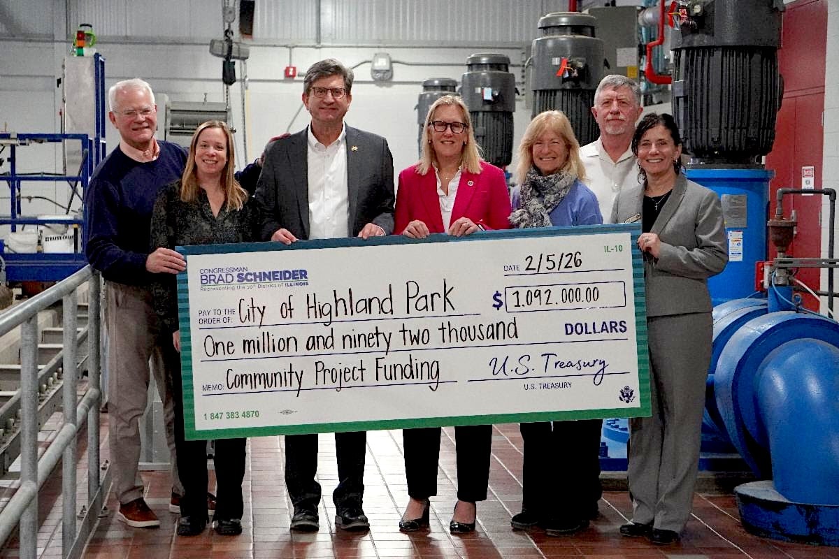 U.S. Rep. Brad Schneider presented the check to Highland Park officials.