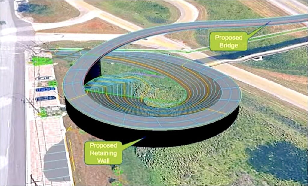 “The existing bridge was a 12% steep slope going up,” O’Laughlin said. “The current standards are to meet the Americans with Disabilities Act Accessibility Standards, which is that it cannot exceed a 5% slope. Essentially, that loop ramp connected to the long ramp is what is getting us to achieve that 5%. We would build it to 4.5% giving it some room, which I think is smart as an engineer.”