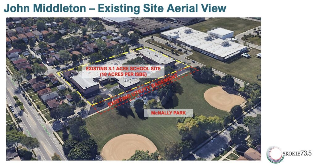 After speaking with the Skokie Park District, Kyle said he learned that the second most expensive plan — which proposed swapping land to build a new Middleton at McNally Park and updating the other buildings for $90 million — was not an option.